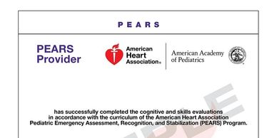 The AHA PEARS® Instructor Course prepares Instructor Candidates to teach American Heart Association Pediatric Emergency Assessment, Recognition, & Stabilization® (PEARS®) classes.